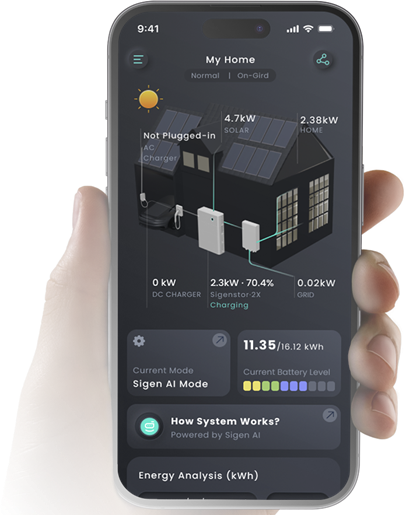 Normaal gesproken produceert uw zonnepanelen systeem gewoon energie. Alle zonne-energie die beschikbaar is, wordt omgezet naar bruikbare energie in huis. Het overtollige wordt terug geleverd naar het net.